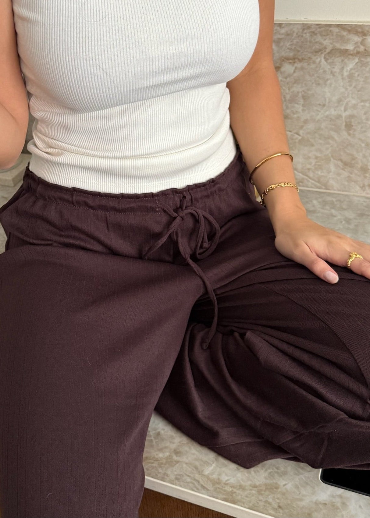 Loungewear Bukser i Pointelle - Mørkebrun