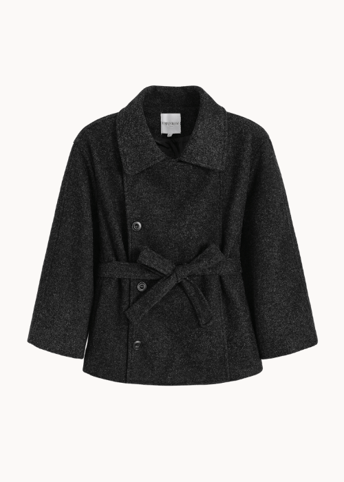 Vores nye Linea Belted Coat er en kort frakke i uldlook med bindebælte i taljen. Jakken har et feminint og tidløst design med brede revers og dobbeltradet look – perfekt til både hverdagsbrug og mere elegante anledninger🤍✨