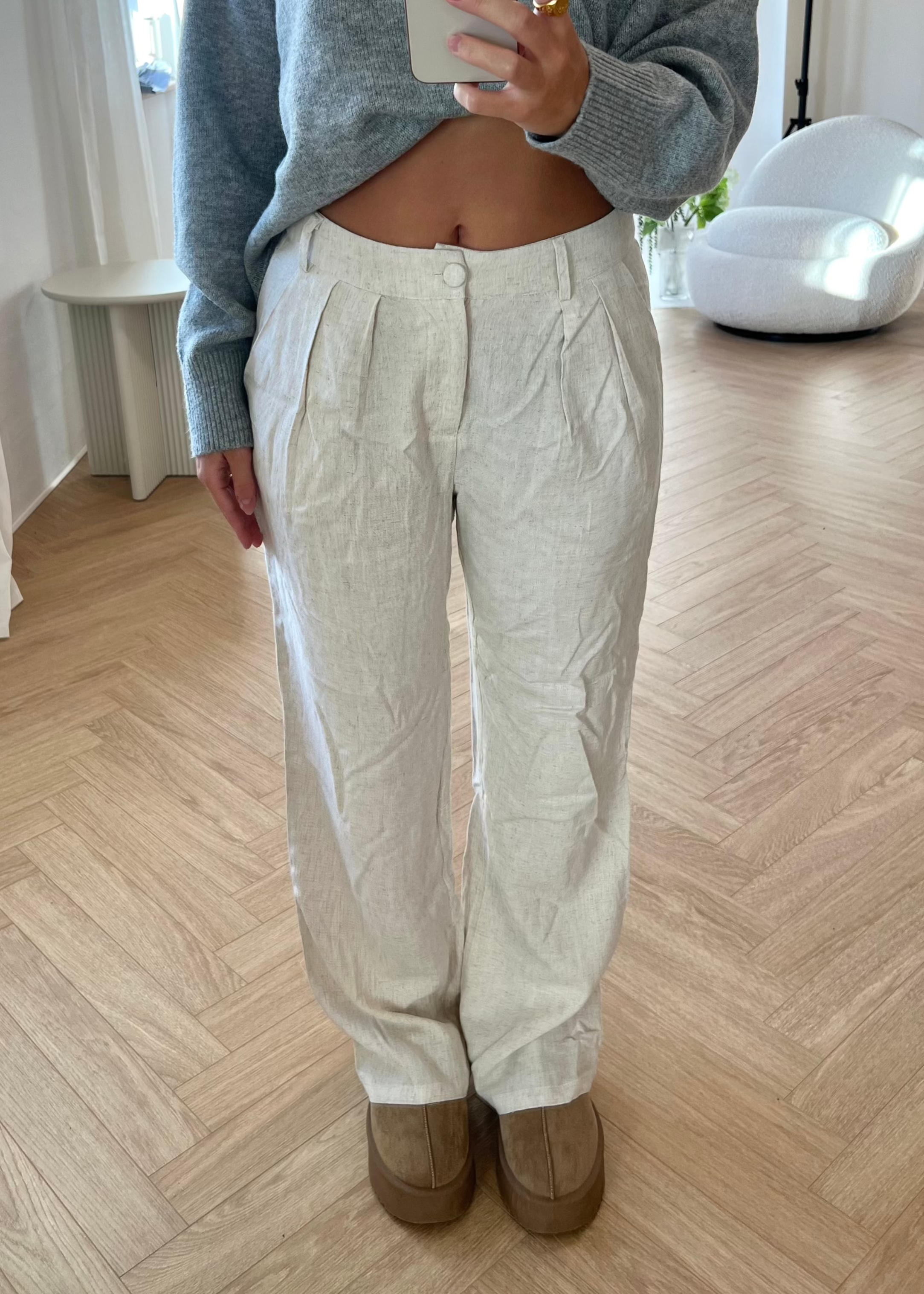 Our Jose linen trousers have a straight fit in an airy and comfortable material. This type of linen blend is thicker than our normal linen trousers and is therefore also a bit warmer. The trousers have nice pleat details at the top and a zipper and button closuređ