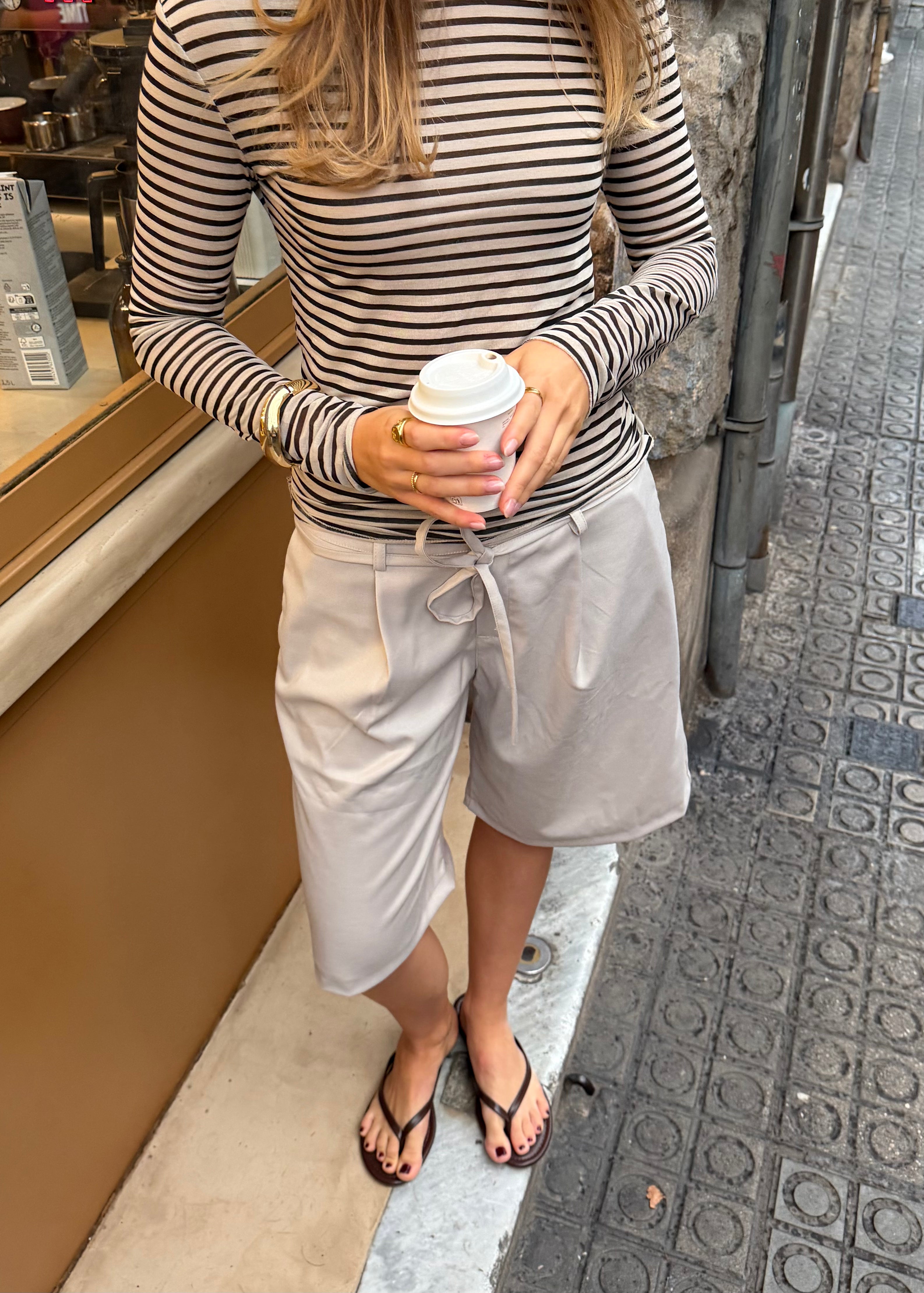 Vores Vide Bermuda Shorts er et must-have til enhver sommergarderobe. De er lavet i et lækkert materiale og har skrålommer foran, bæltestropper samt et aftageligt bindebånd, der giver et afslappet og stilrent udtryk. Shortsene har en flatterende bermuda-længde og to falske lommer bagpå, som fuldender det klassiske habit-inspirerede look 🌟
