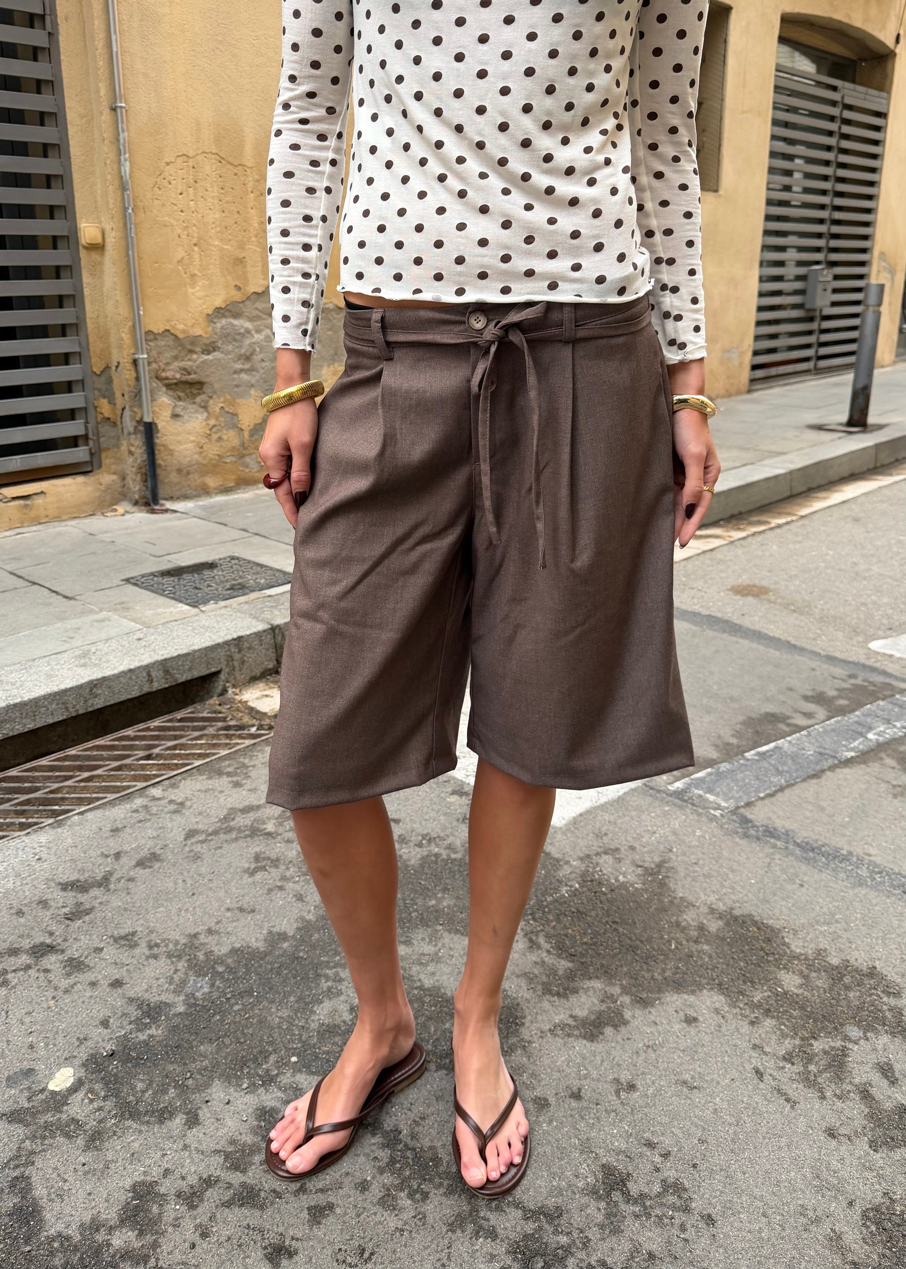Vores Vide Bermuda Shorts er et must-have til enhver sommergarderobe. De er lavet i et lækkert materiale og har skrålommer foran, bæltestropper samt et aftageligt bindebånd, der giver et afslappet og stilrent udtryk. Shortsene har en flatterende bermuda-længde og to falske lommer bagpå, som fuldender det klassiske habit-inspirerede look 🌟