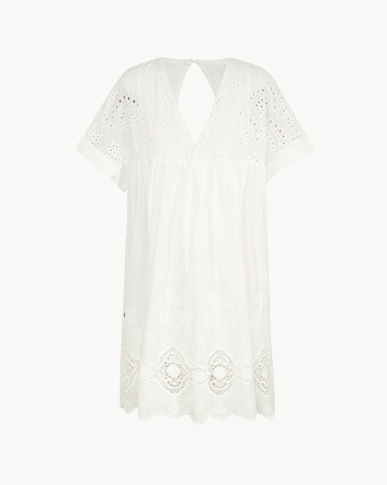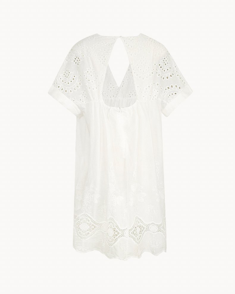 Our fine Andrea Dress is the perfect white dress for summer. It has an open back and is made of an airy material. The dress also has many fine lace details 🌸