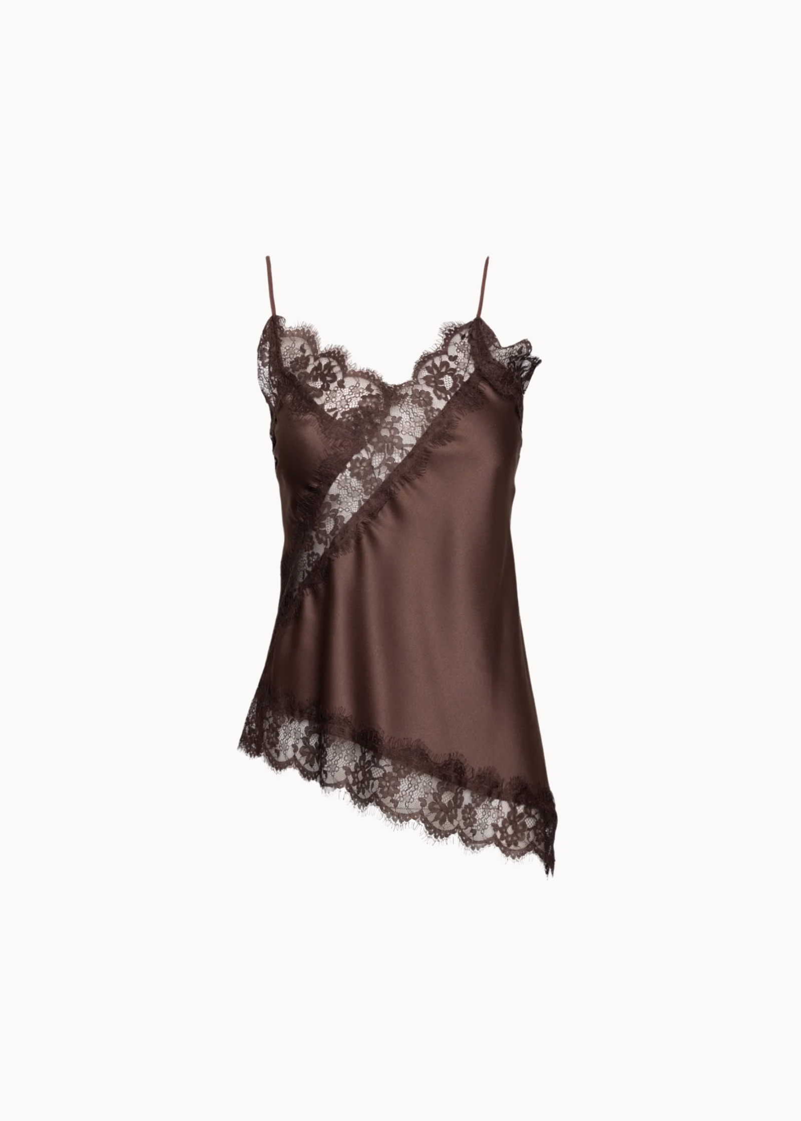 Asymmetrisk Satin Top - Brun