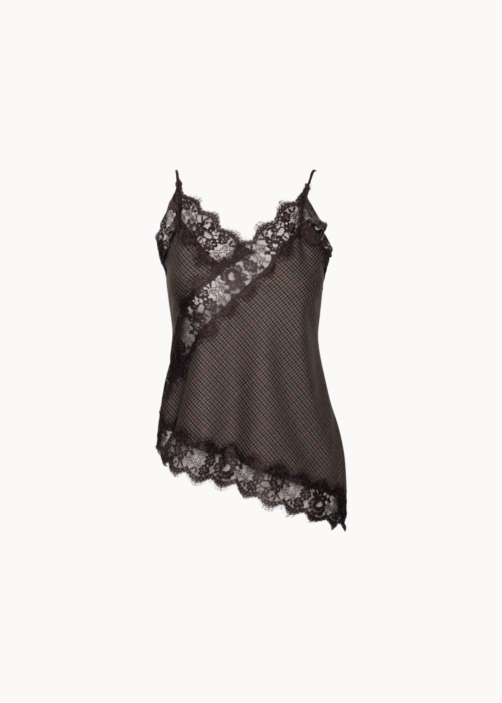 Asymmetrisk Satin Top - Ternet Mørkebrun