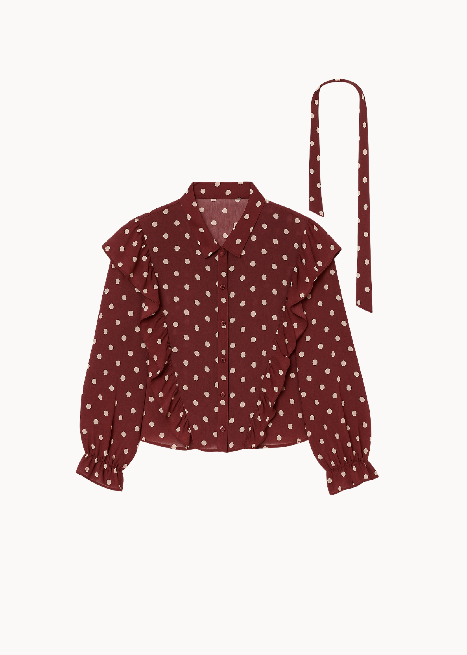 Vores Belle Polka Skjorte er en feminin og elegant fortolkning af den klassiske skjorte. Den er designet med et smukt prikket mønster og fine flæsedetaljer, der giver et romantisk udtryk. Skjorten har en aftagelig sløjfe ved halsen, så du nemt kan style den både sofistikeret og afslappet. De let puffede ærmer og bløde stof giver et flatterende fald og et eksklusivt look - perfekt til både hverdag og festlige anledninger✨
