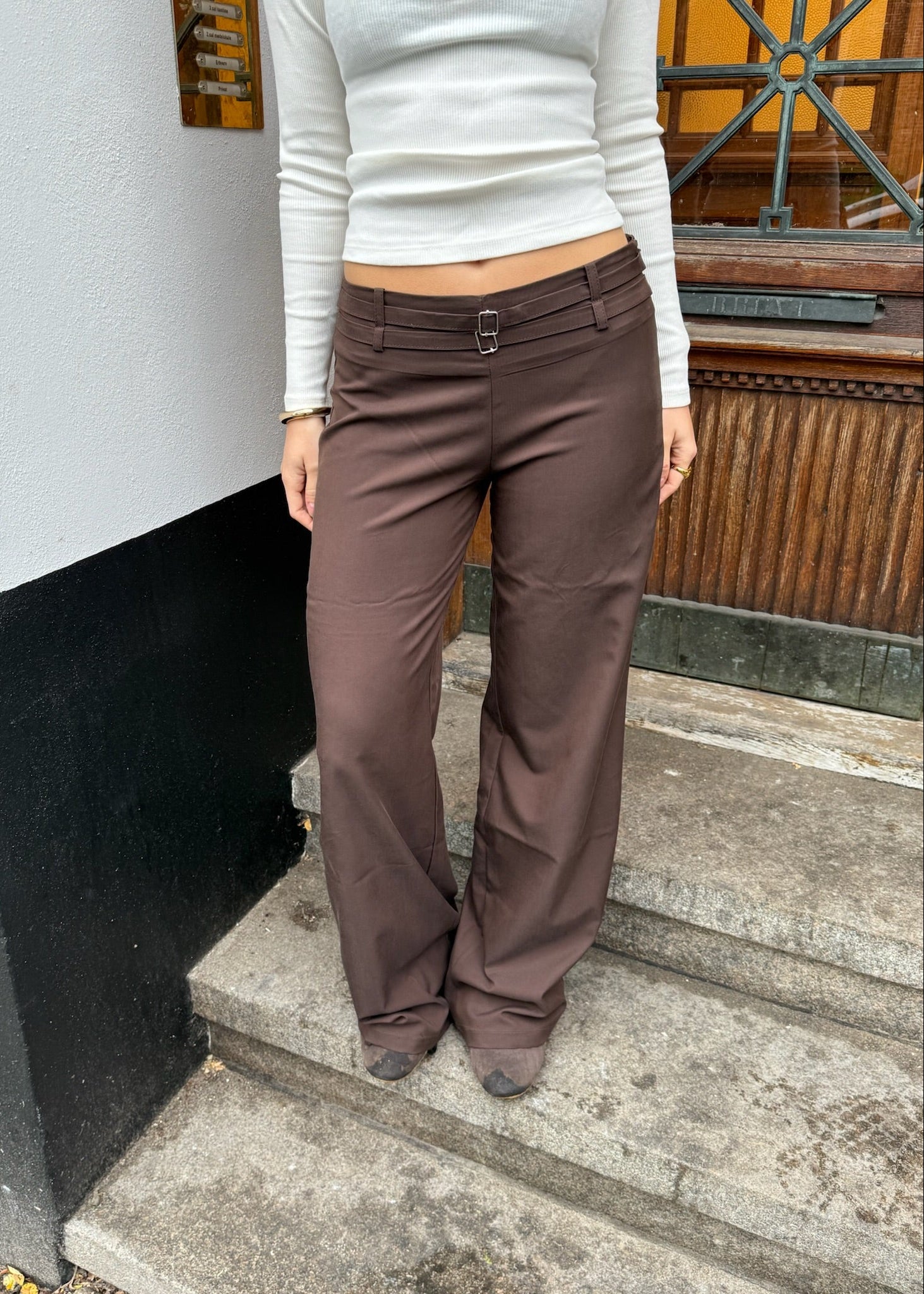 Our New Elira Low Waist Trousers are the perfect choice if you're looking for a stylish and modern look. They're made from a soft and luxurious fabric that feels comfortable against the skin and has a nice fit. The trousers have a low waist, straight legs and an elegant belt and buckle detail that gives an exclusive twist. ✨