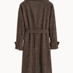 The most beautiful long coat in a wool look with elegant diagonal stripes. The coat has a double-breasted closure, wide collar and tie belt at the waist, which gives a sophisticated but raw look. Perfect for autumn and winter, when you want to combine warmth and style🖤✨