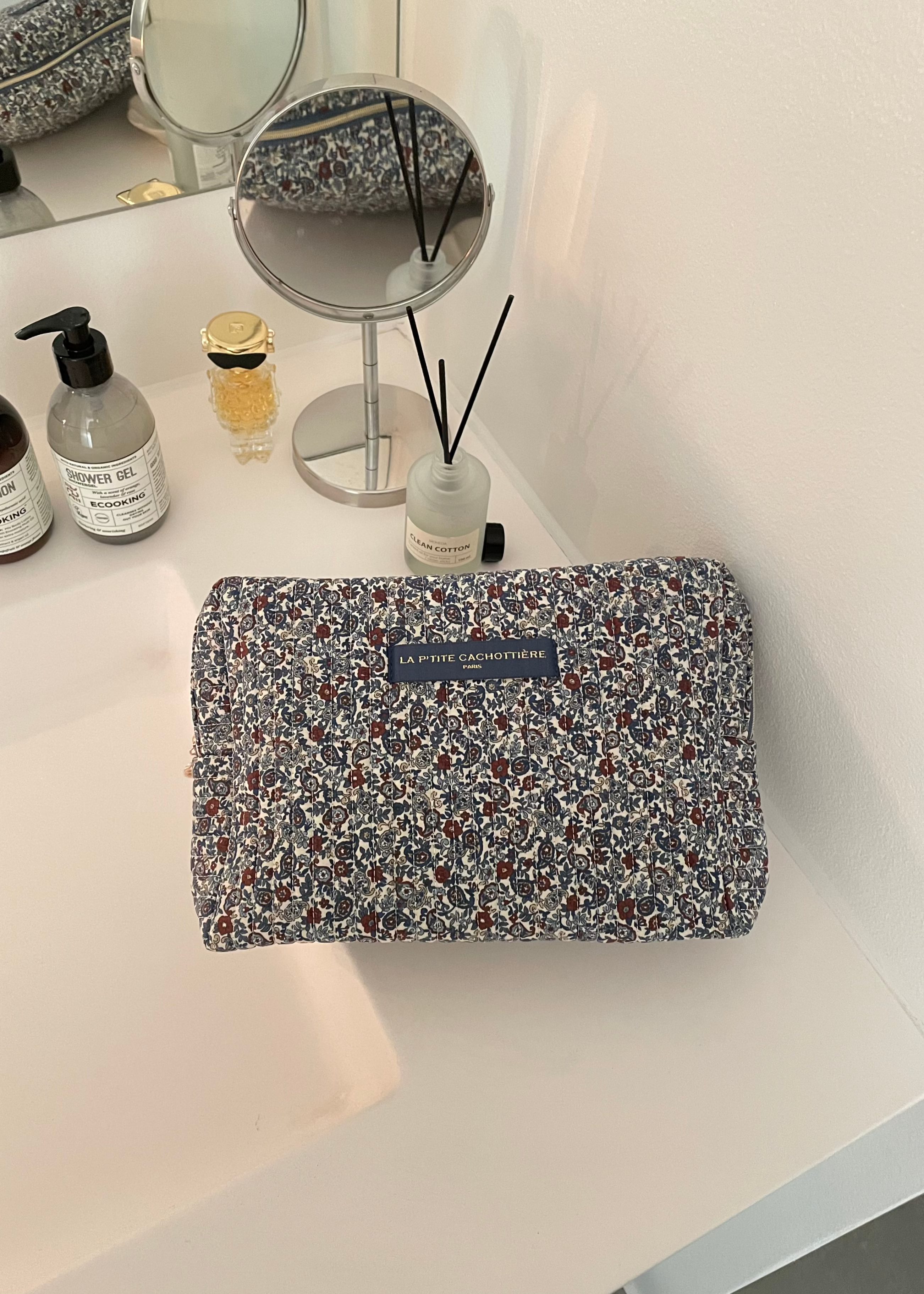 Our fine Gry Toilet bag is a fine floral toilet bag, which is made of a soft material. It has a fine floral pattern and a gold zipper