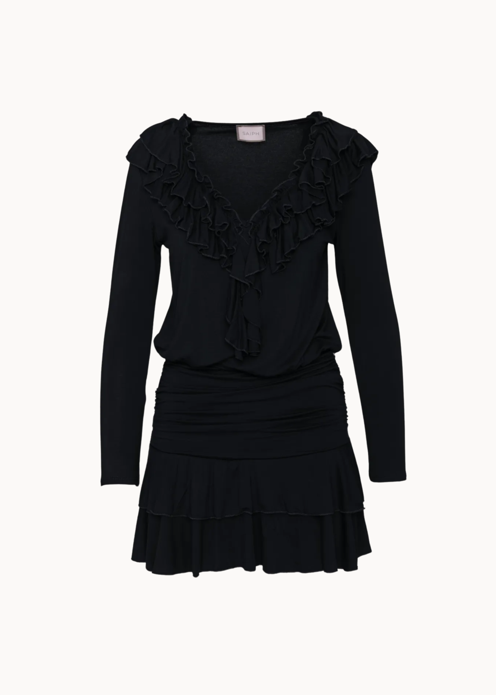 Vores Kora Ruffle Mini Kjole er en feminin og legende kjole med smukke flæsedetaljer, der giver et romantisk og elegant udtryk. Den har en flatterende pasform med rynkede detaljer i taljen, der fremhæver figuren, og et blødt, behageligt materiale, som falder naturligt på kroppen. De lange ærmer og den flæseprægede nederdel skaber et stilfuldt look, perfekt til både hverdag og festlige anledninger✨