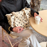 Vores Laura Prikket Net er en klassisk og rummelig stoftaske i 100 % bomuld, perfekt til forårs- og sommersæsonen. Tasken har et tidløst sort polkaprint, som giver et fint og sommerligt udtryk, der er nemt at style til både hverdag og ferie.