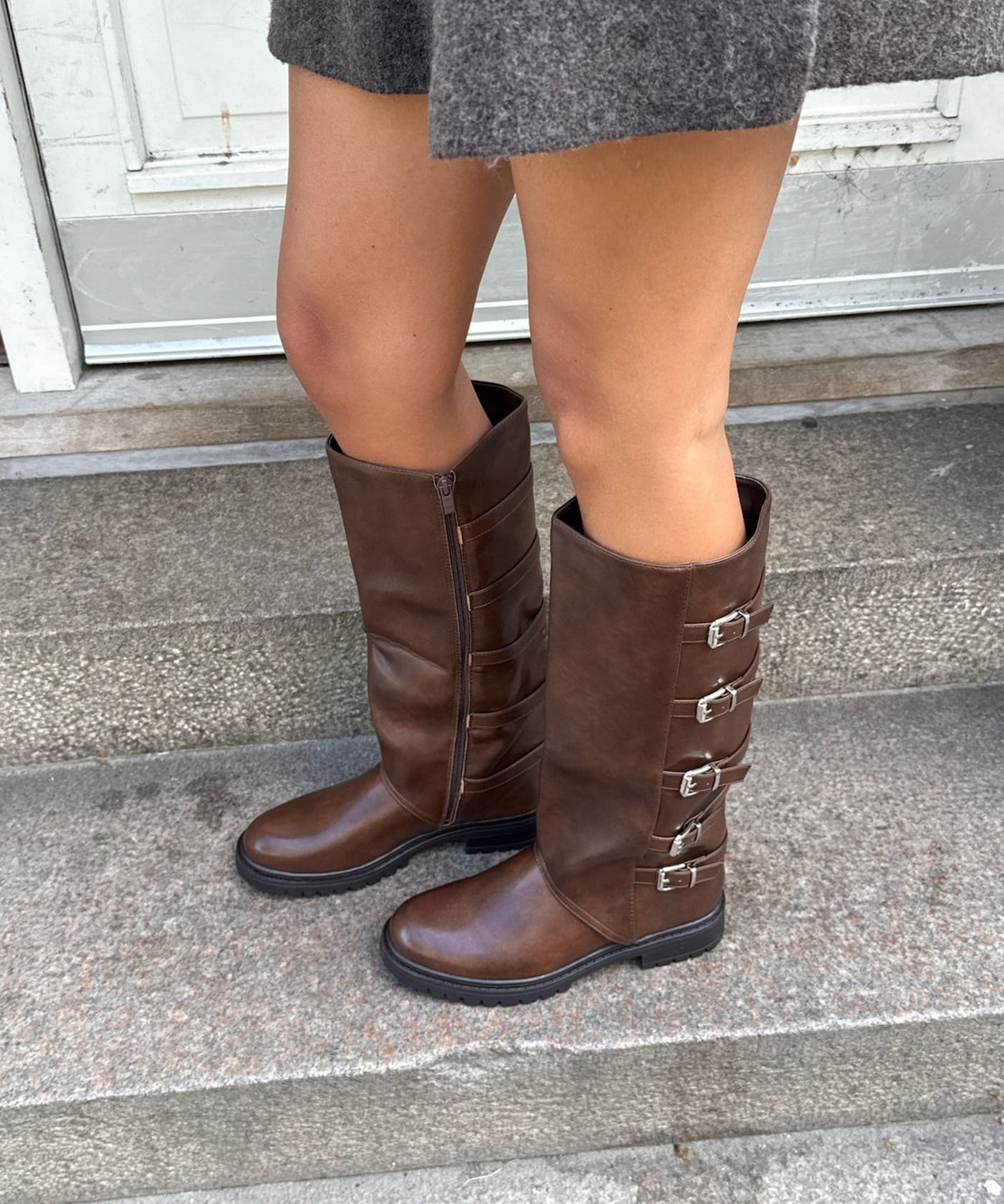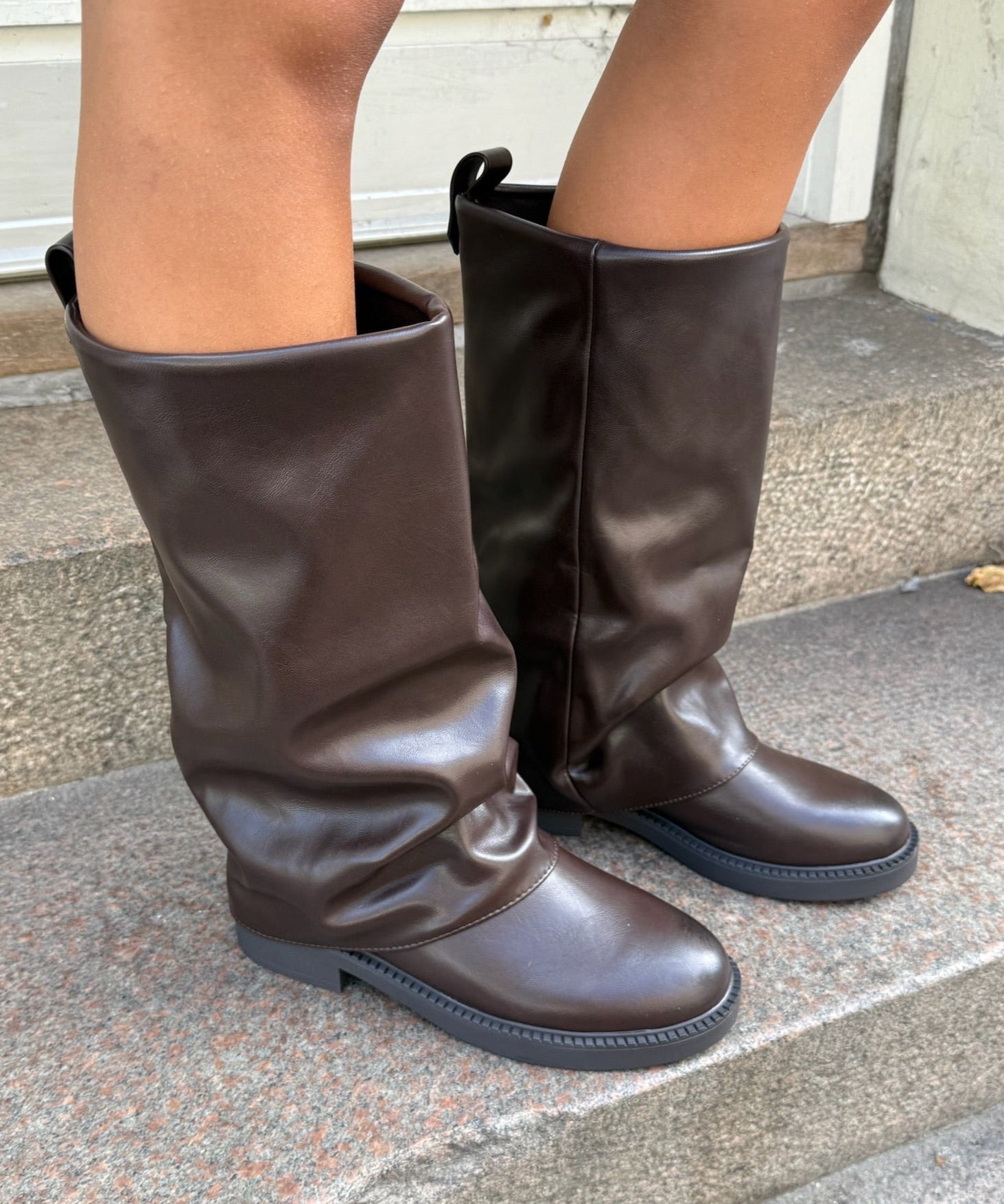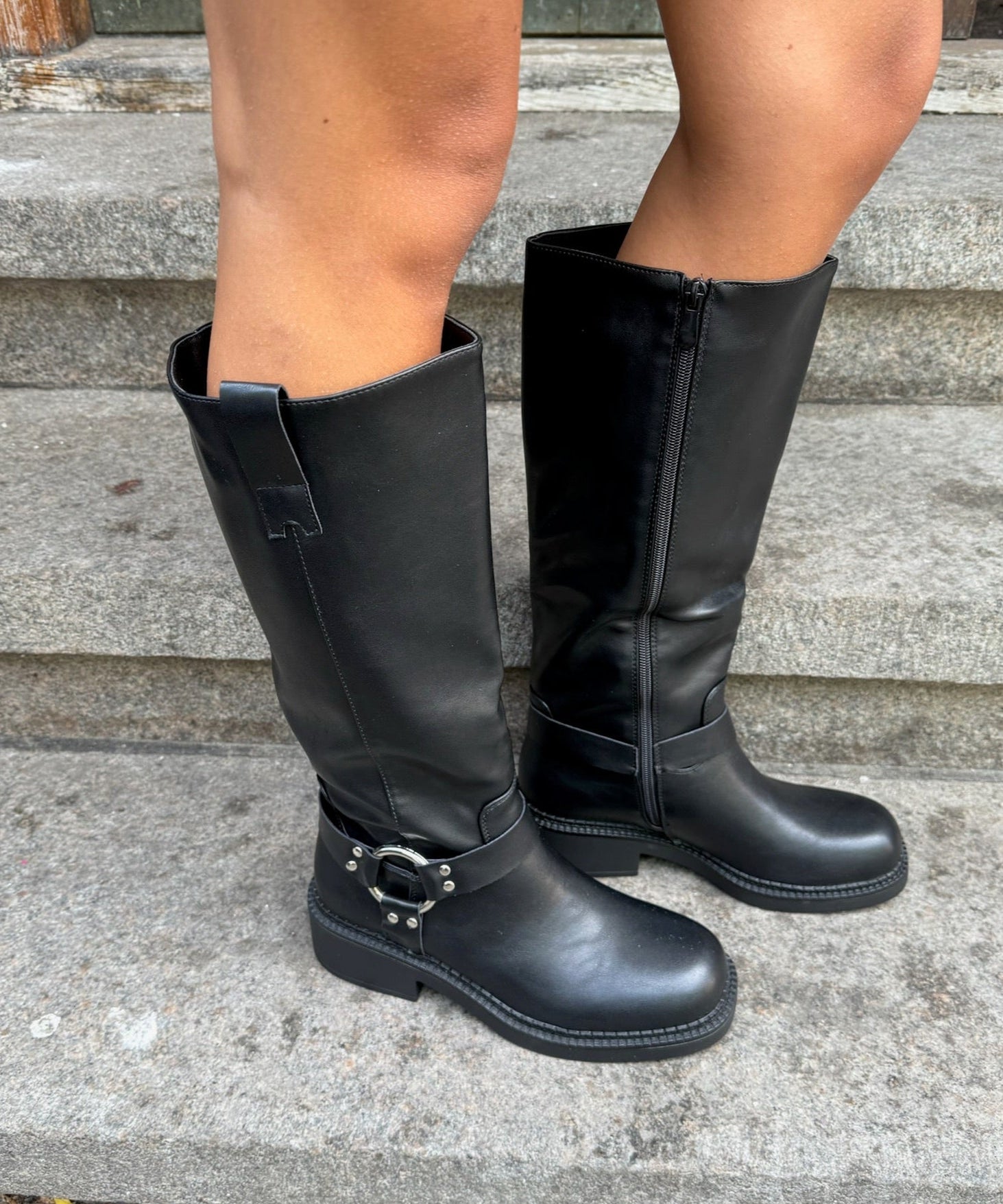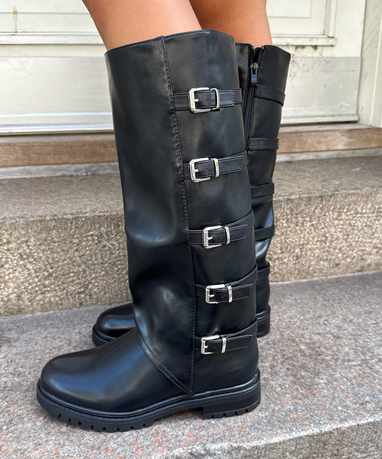 Vores nye er en stilren støvle i imiteret læder med manchet-detalje og dekorativt spænde. De kombinerer et råt udtryk med et feminint touch – perfekte til efteråret og vintersæsonen. Den stabile sål giver komfort, så du både kan bruge dem til hverdag og en tur i byen✨