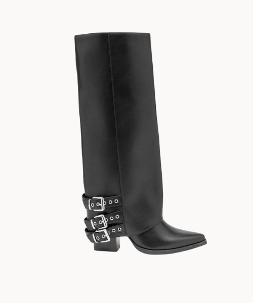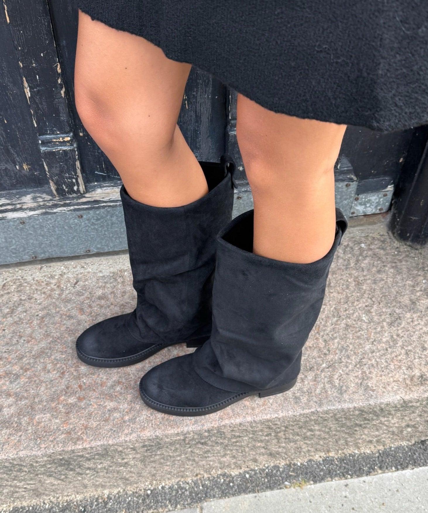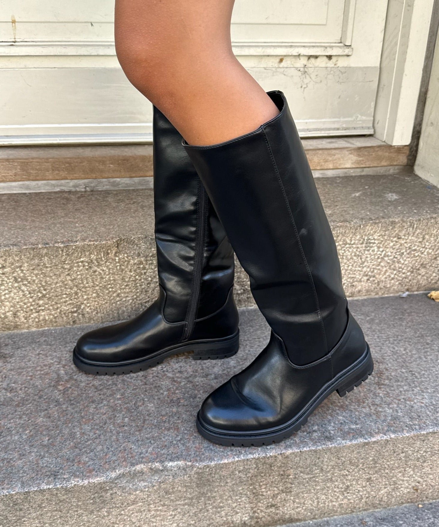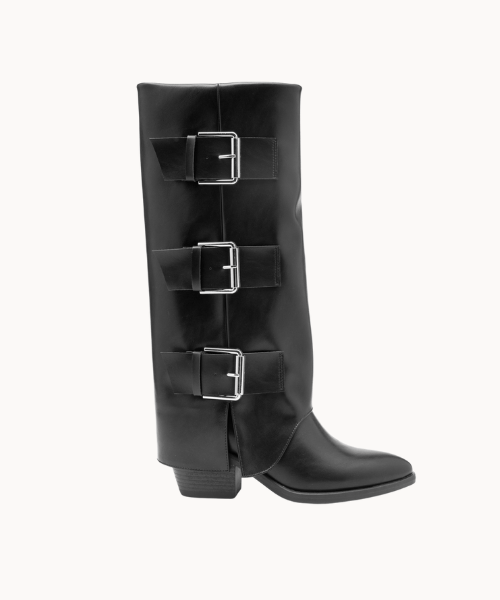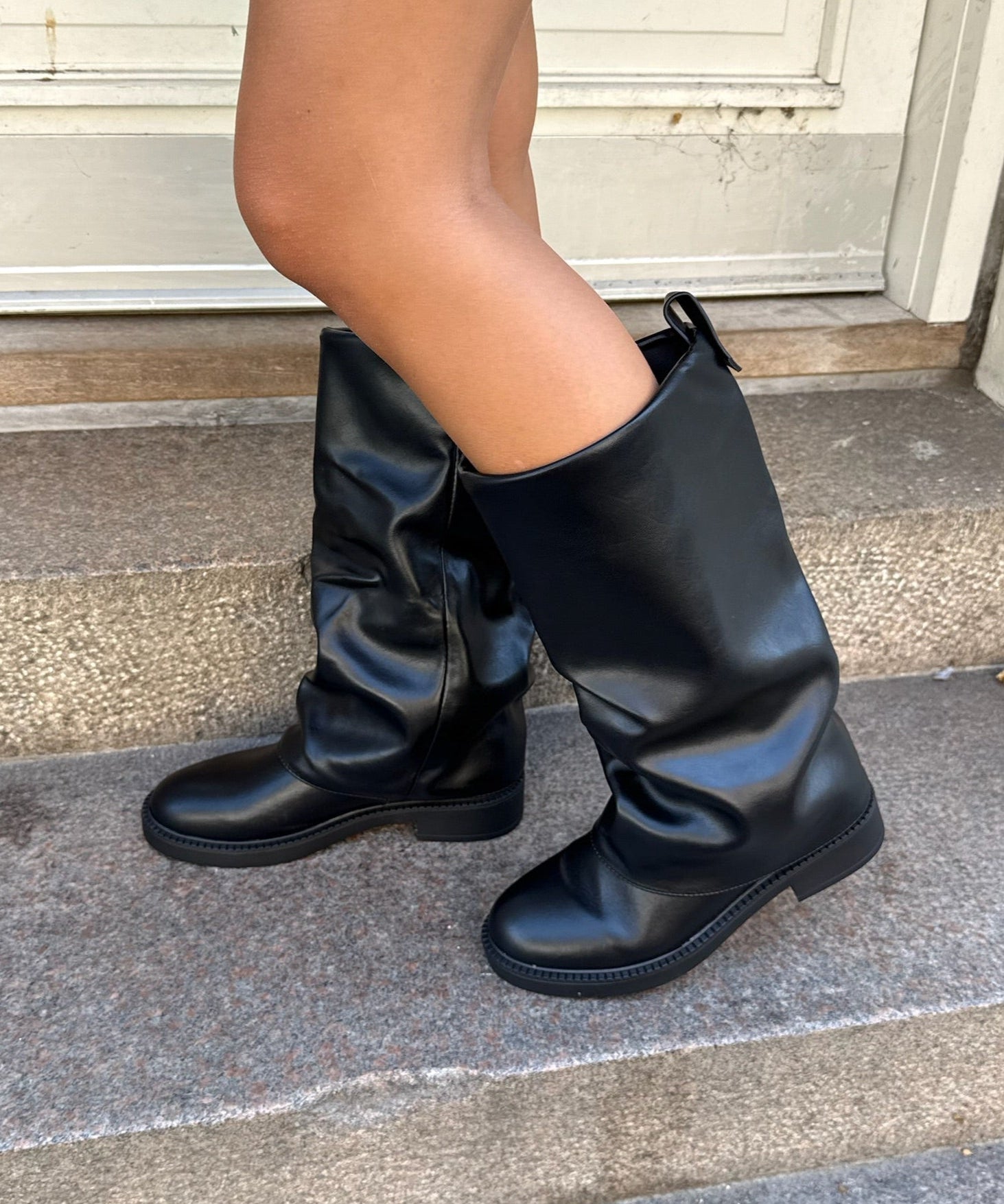 Vores nye er en stilren støvle i imiteret læder med manchet-detalje og dekorativt spænde. De kombinerer et råt udtryk med et feminint touch – perfekte til efteråret og vintersæsonen. Den stabile sål giver komfort, så du både kan bruge dem til hverdag og en tur i byen✨
