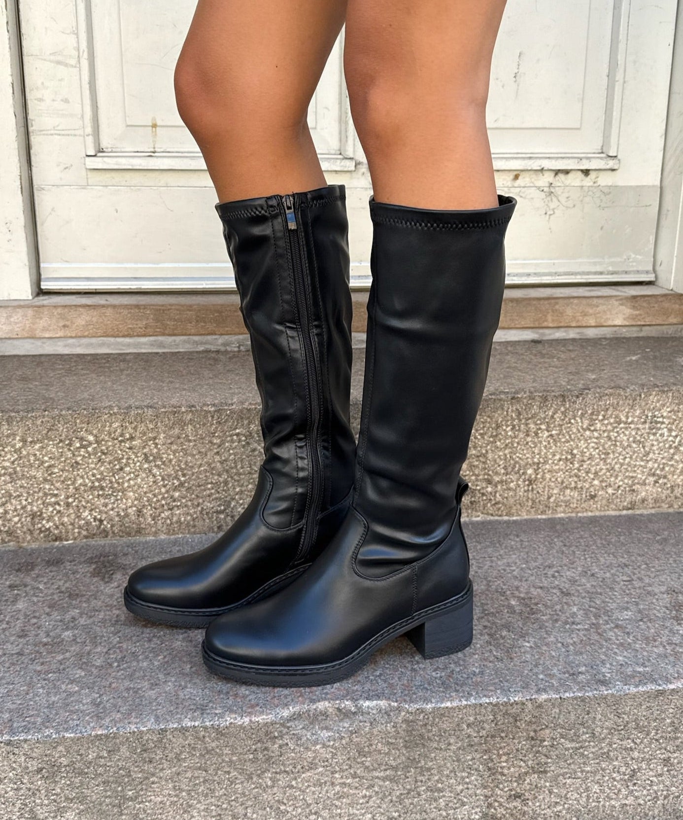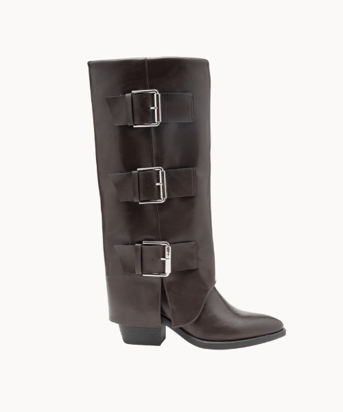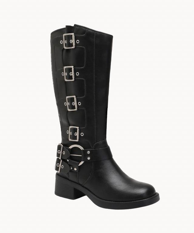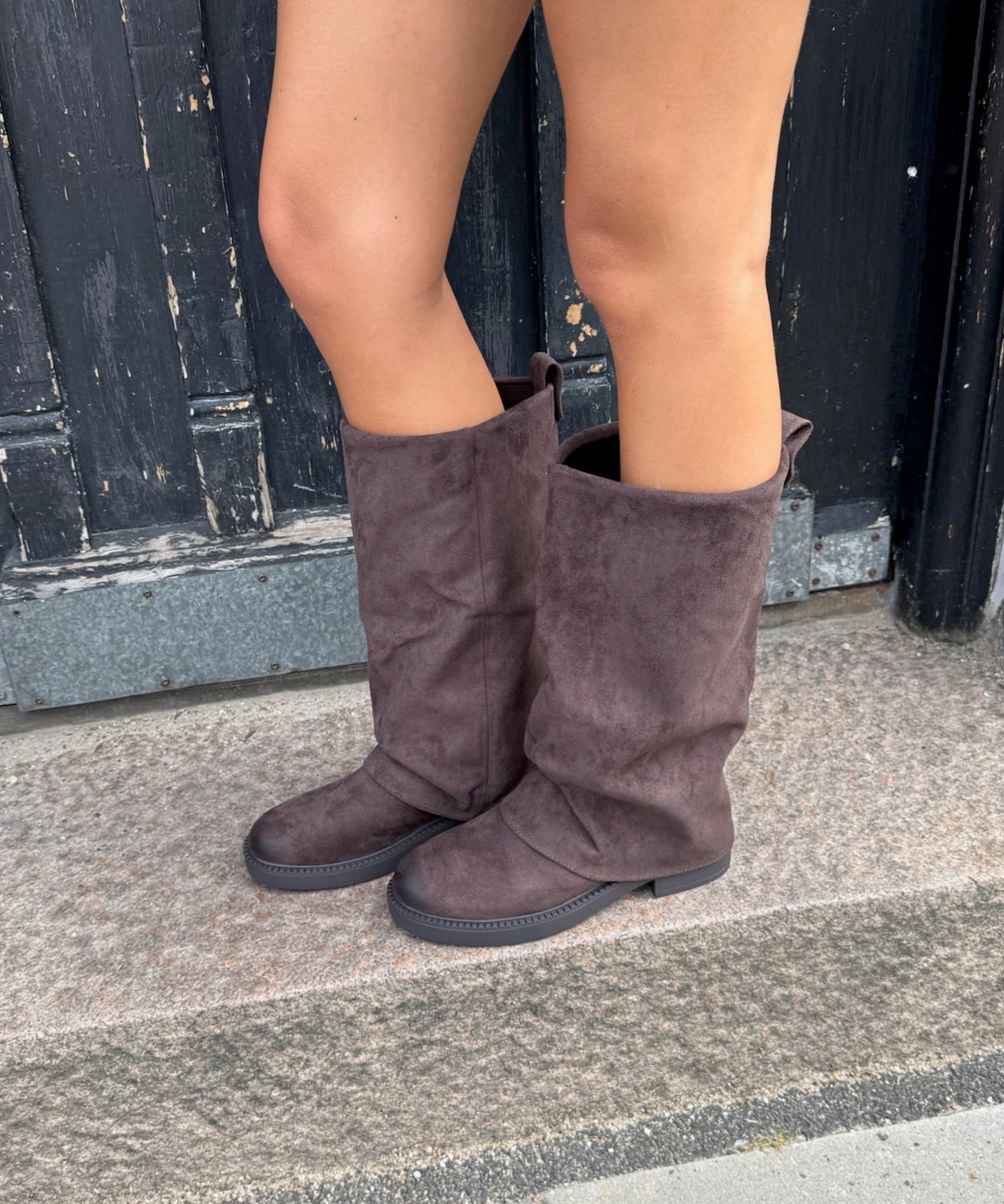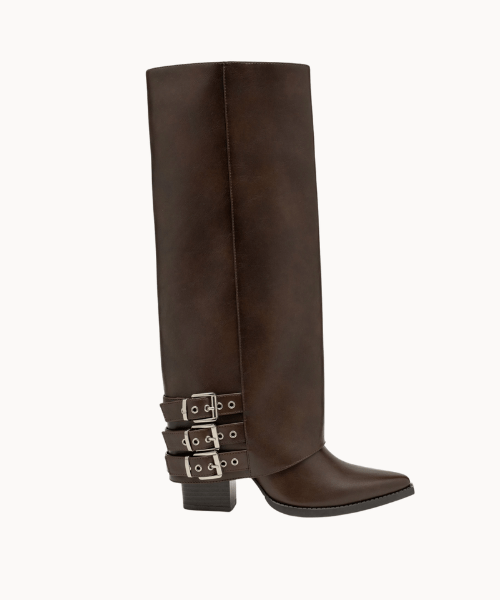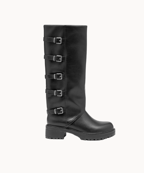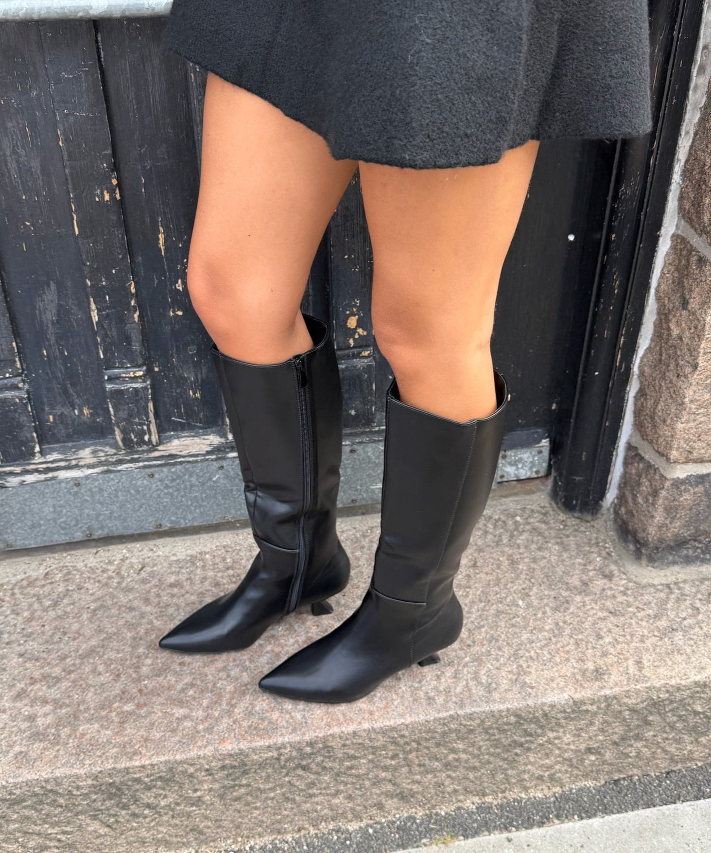 Vores nye er en stilren støvle i imiteret læder med manchet-detalje og dekorativt spænde. De kombinerer et råt udtryk med et feminint touch – perfekte til efteråret og vintersæsonen. Den stabile sål giver komfort, så du både kan bruge dem til hverdag og en tur i byen✨