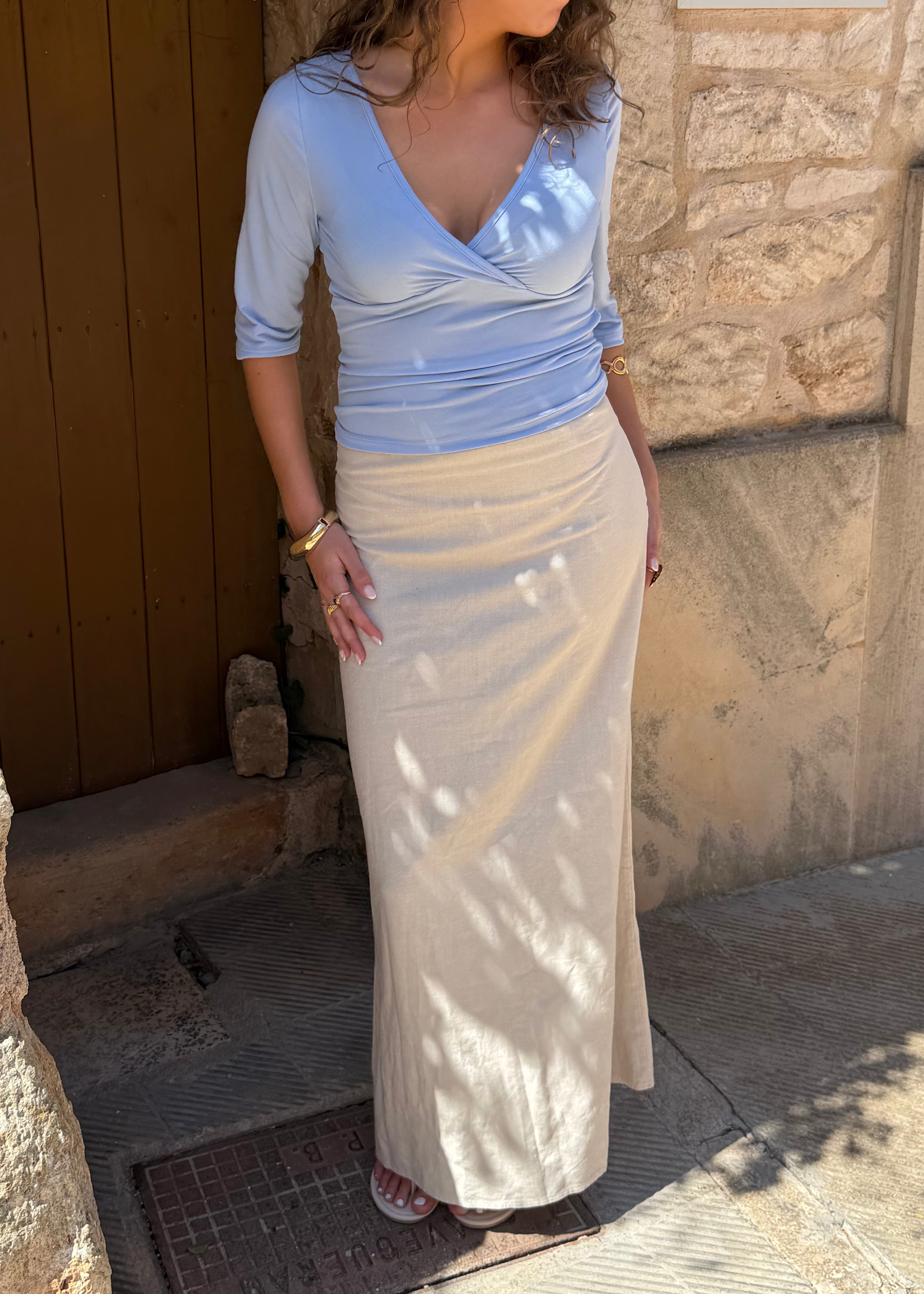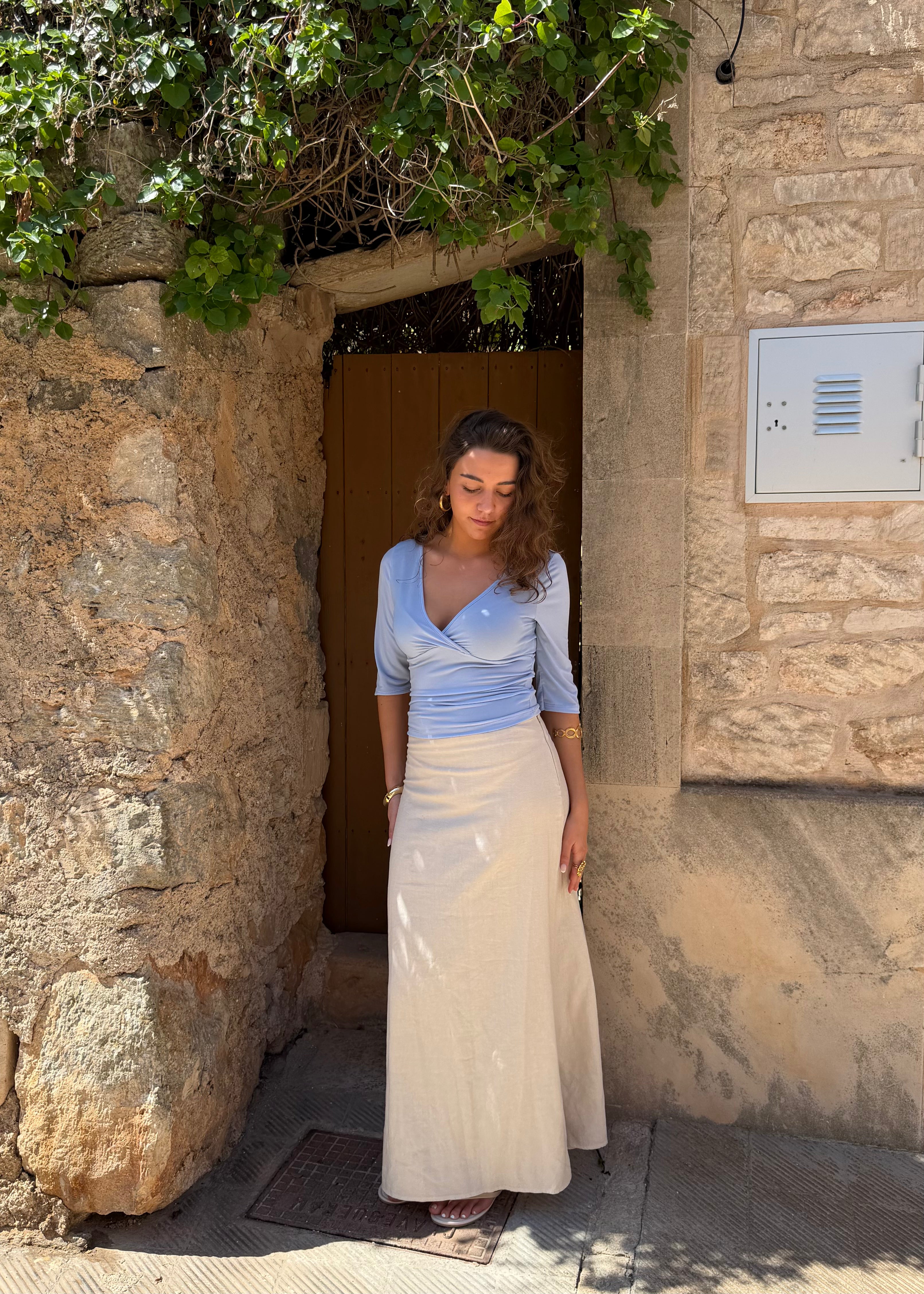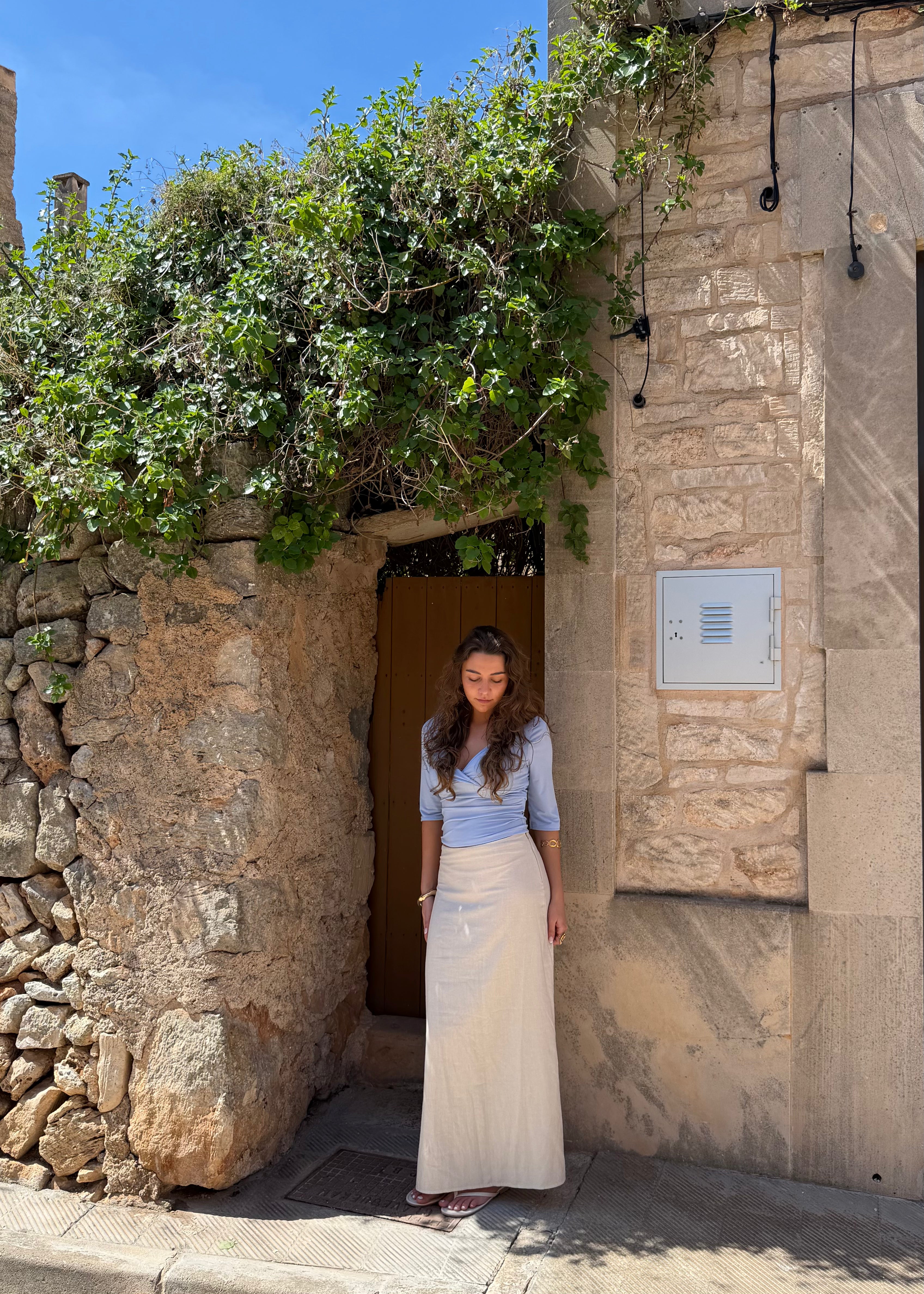 Vores Maxi Hørnederdel er en klassisk lang nederdel i hør. Den er perfekt til sommeren i dens luftige materiale. Nederdelen har en diskret lynlås i siden og ellers ingen kant i taljen, som gør den meget feminin🤍✨