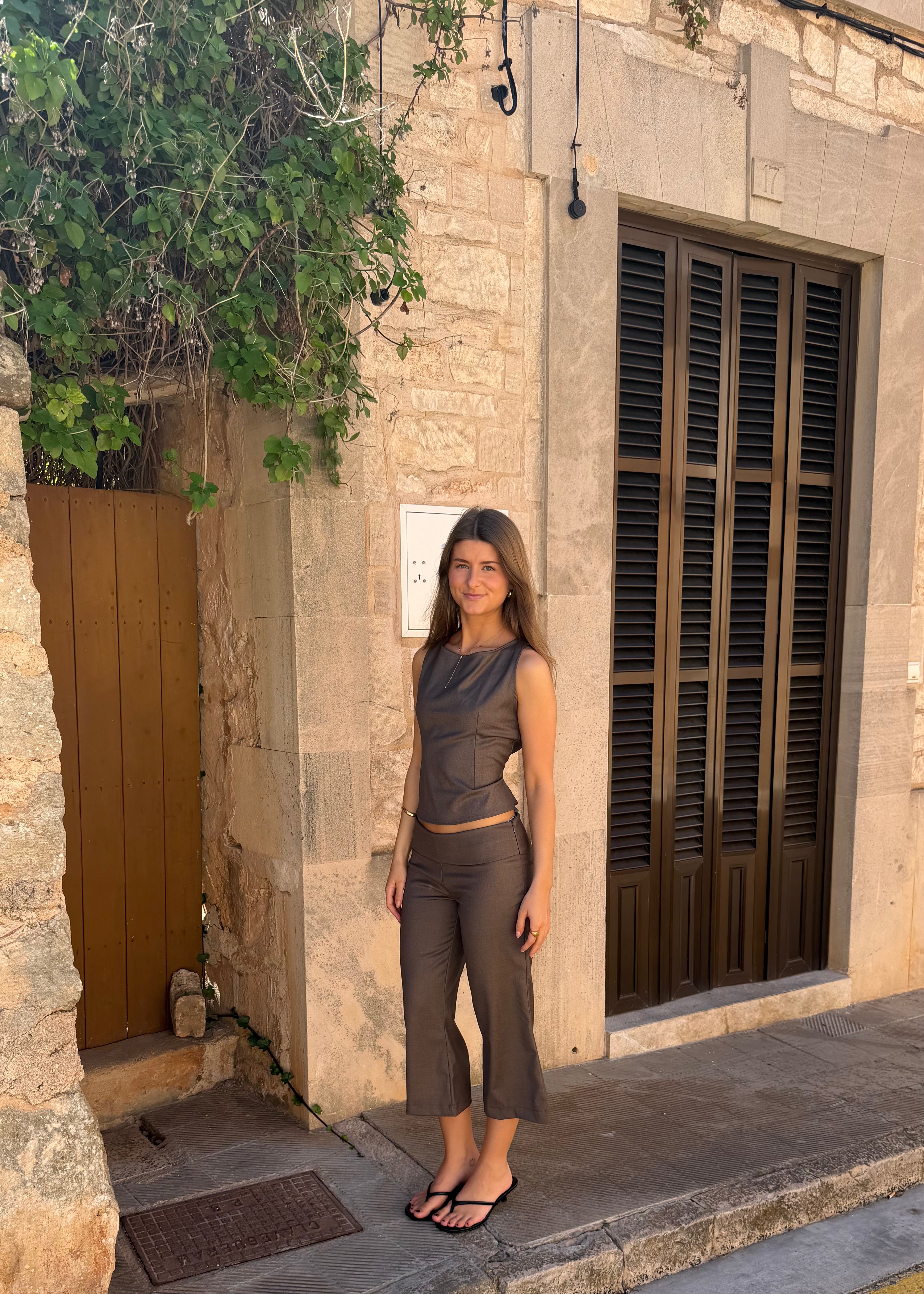 Low Waist Capribukser - Mørkebrun - ByStenholt.dk