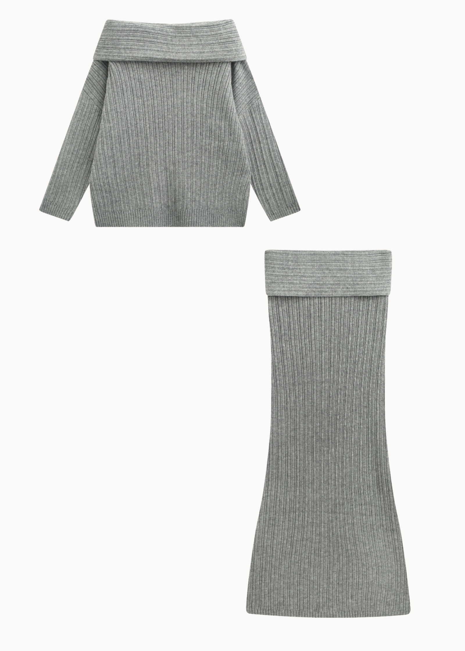 Sæt: Indeholder Off-shoulder strik og strik maxi-nederdel