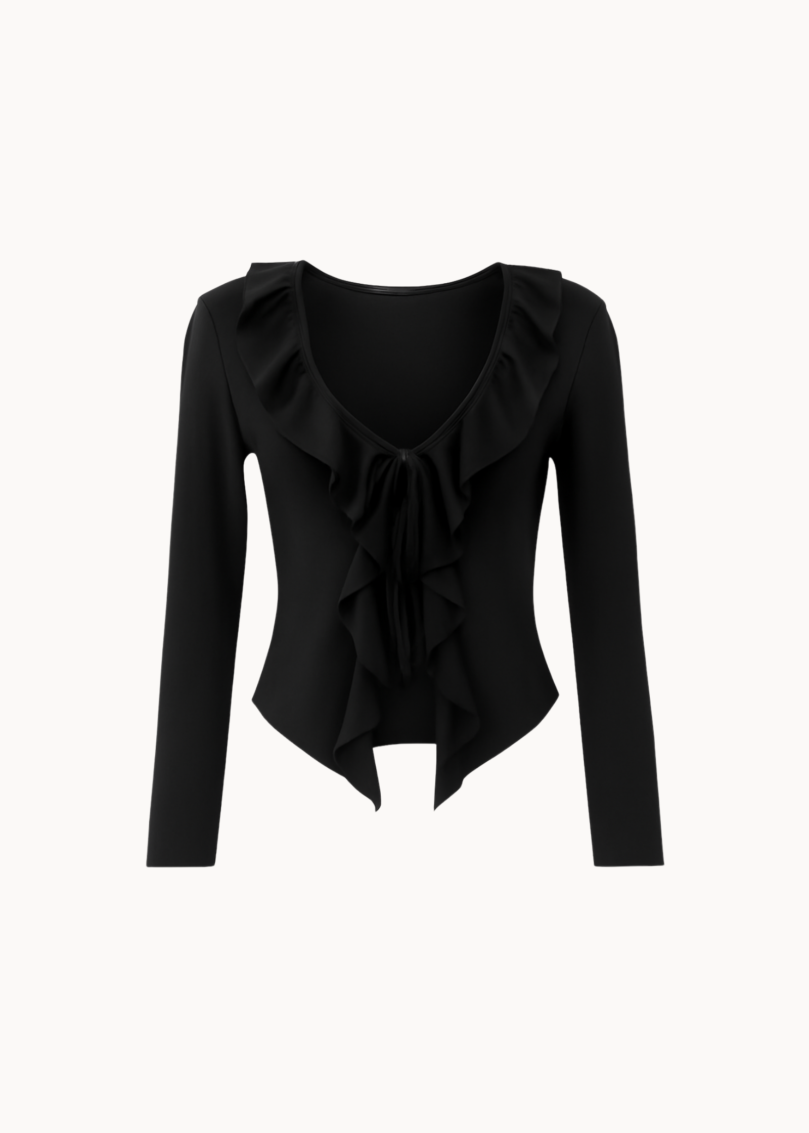 Ruffle Tie Bluse - Sort