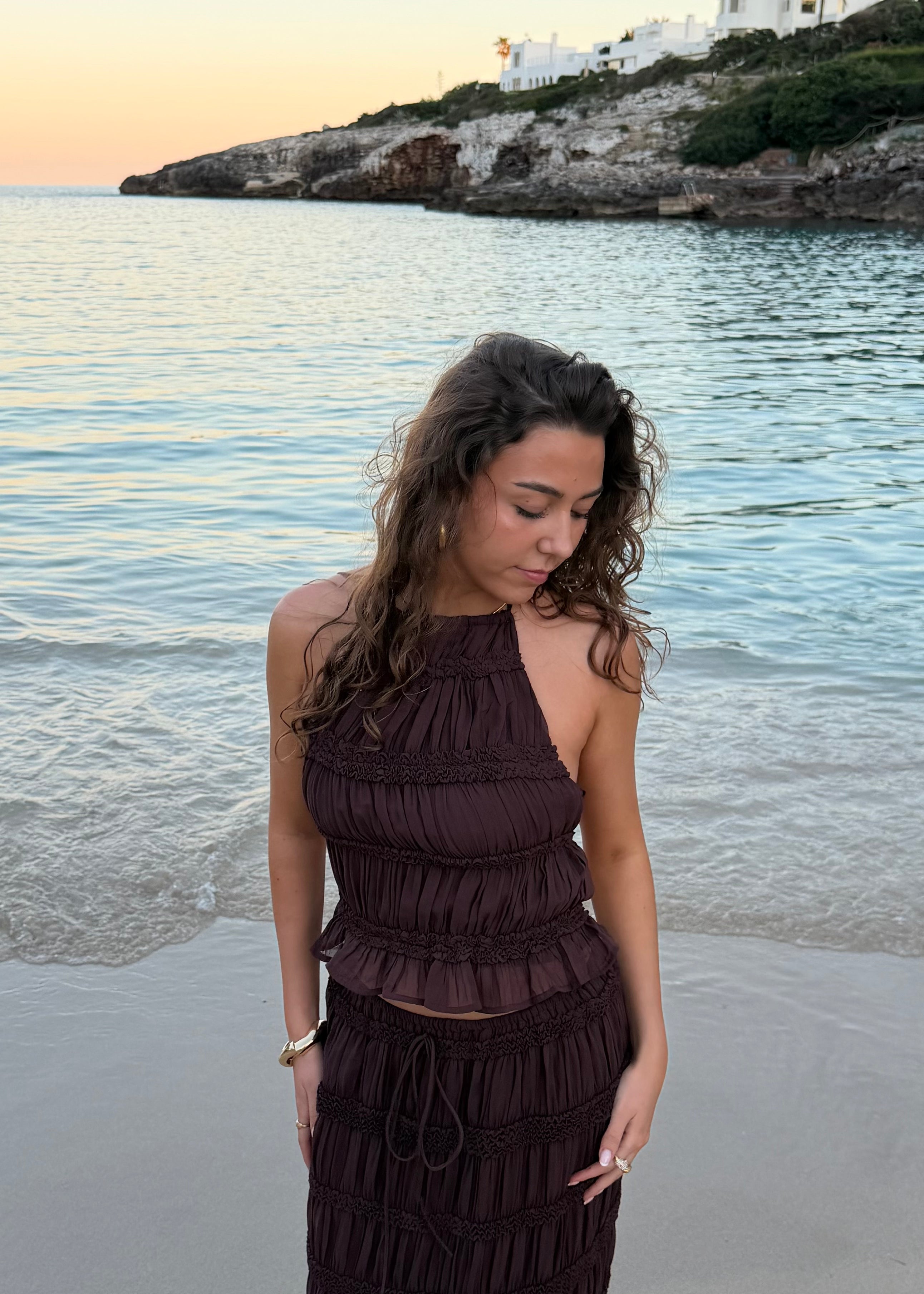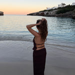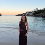 Vores Valeria Mesh Top har bar ryg og bindedetalje, som giver et elegant og luftigt udtryk, mens nederdelen falder flot og let med sin transparente mesh-kvalitet.🤍