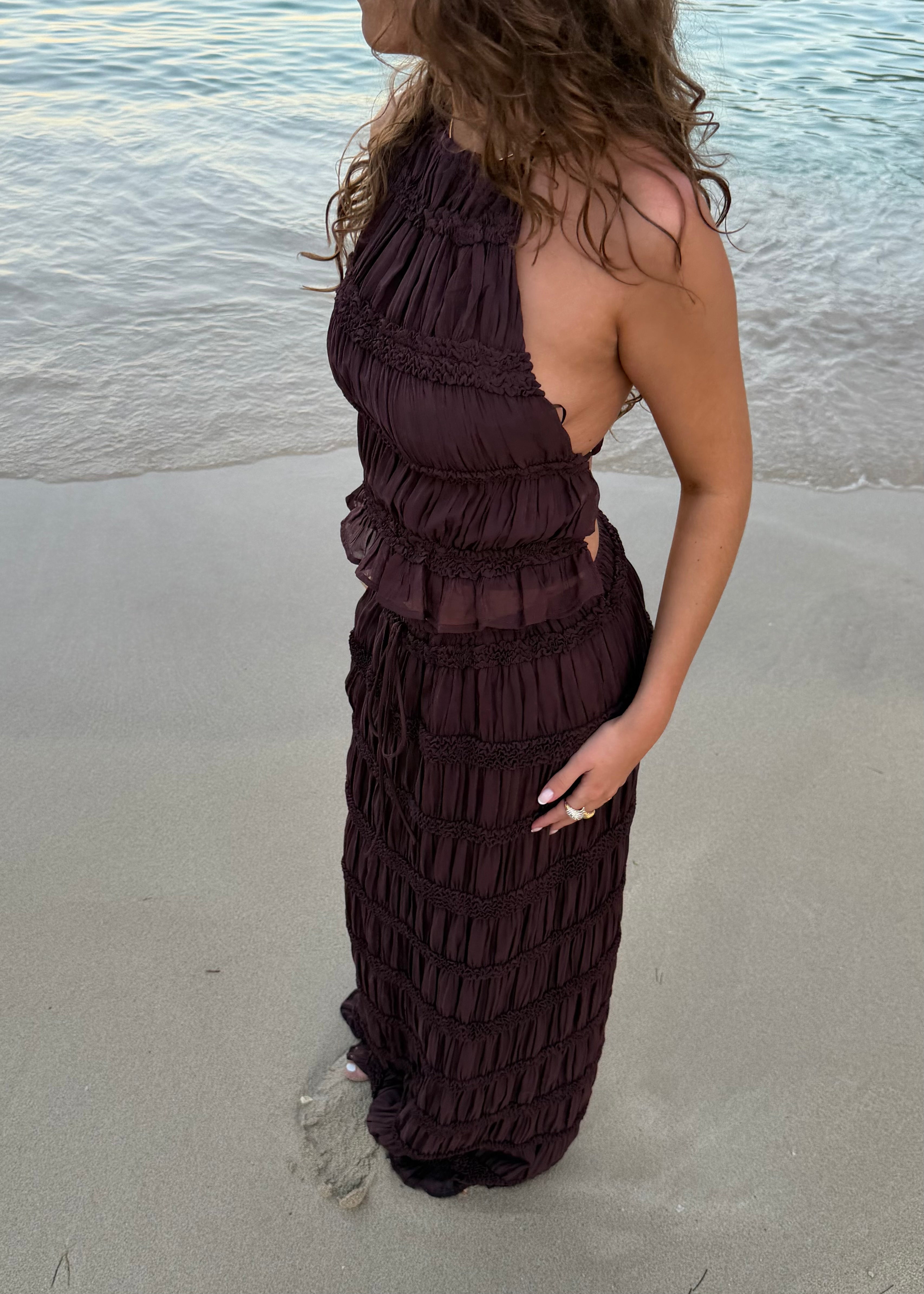 Sarah Mesh Maxi Kjole - Mørkebrun - ByStenholt.dk